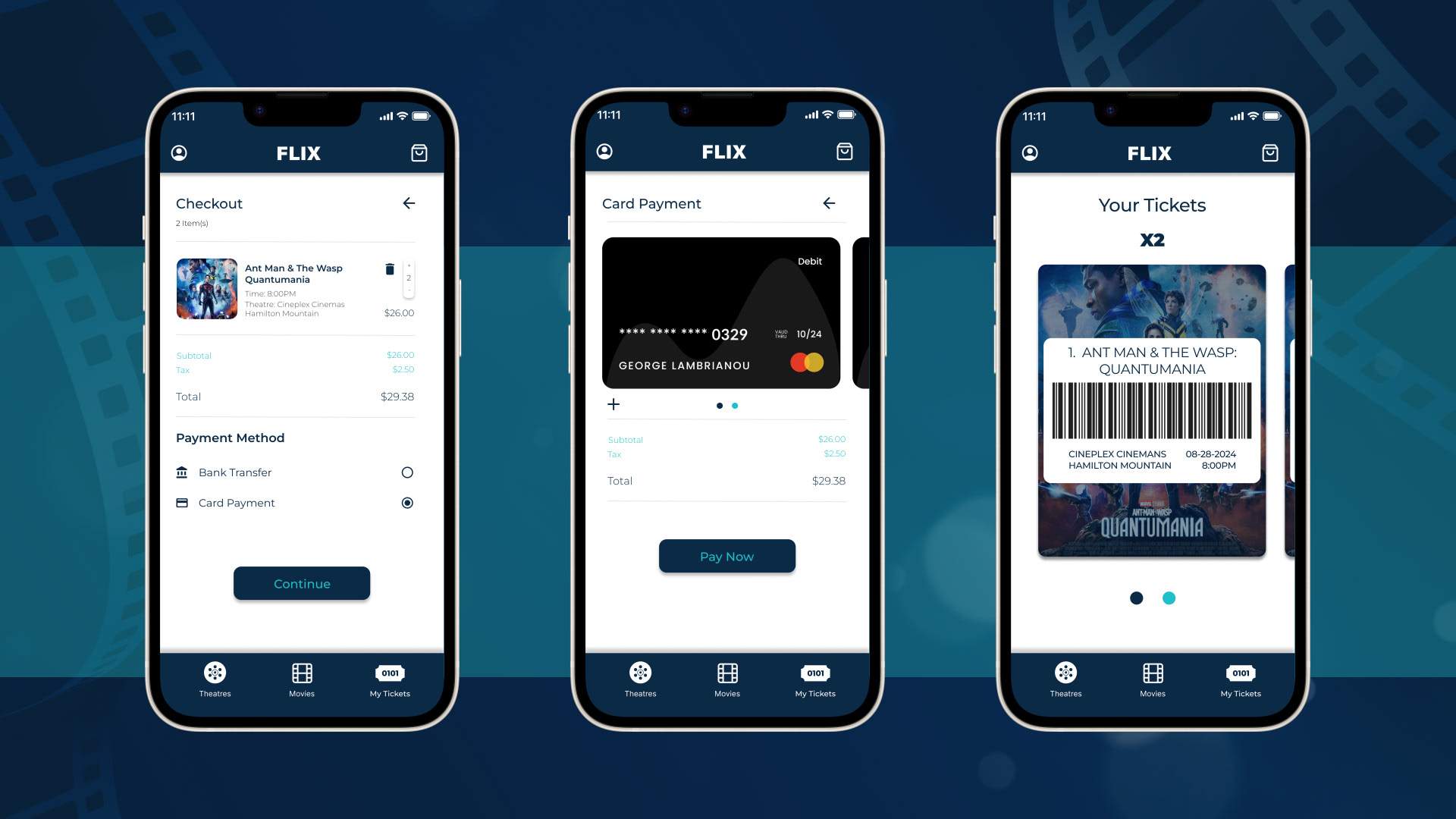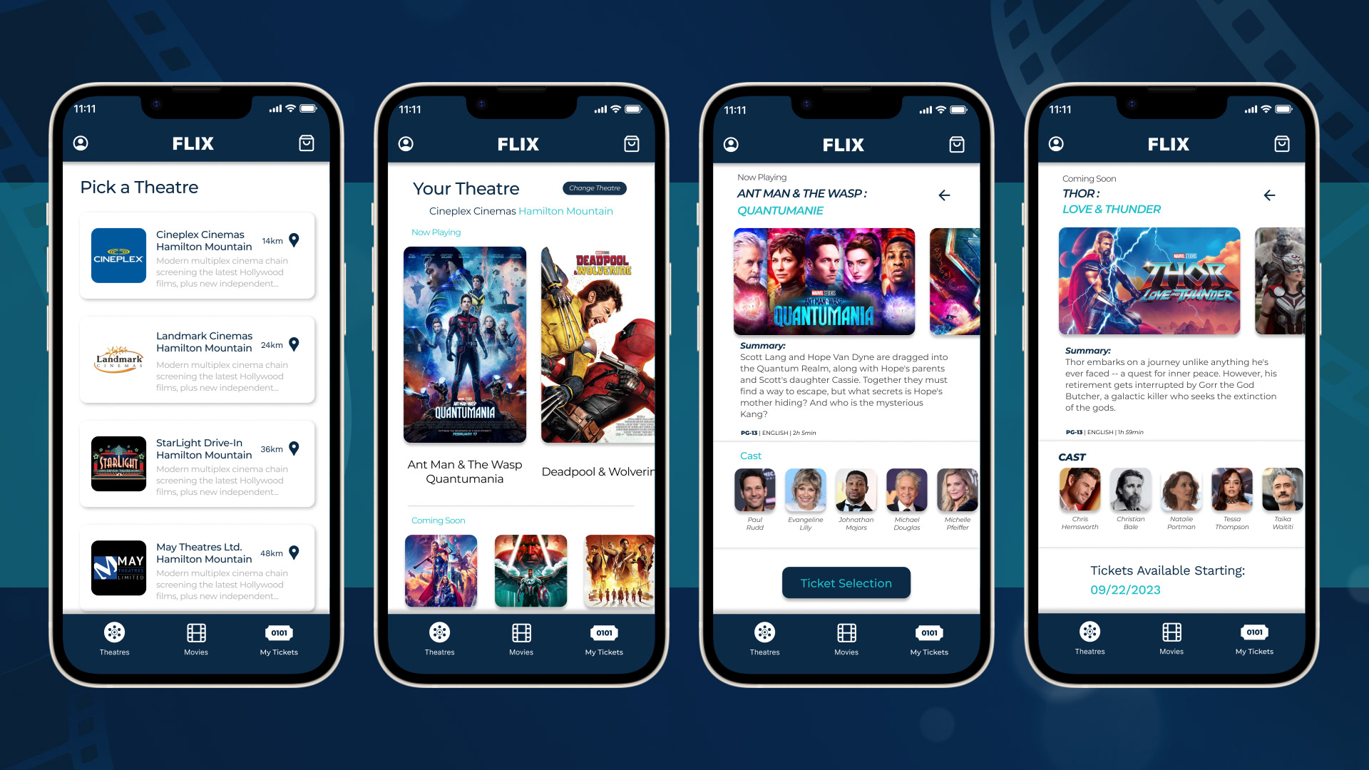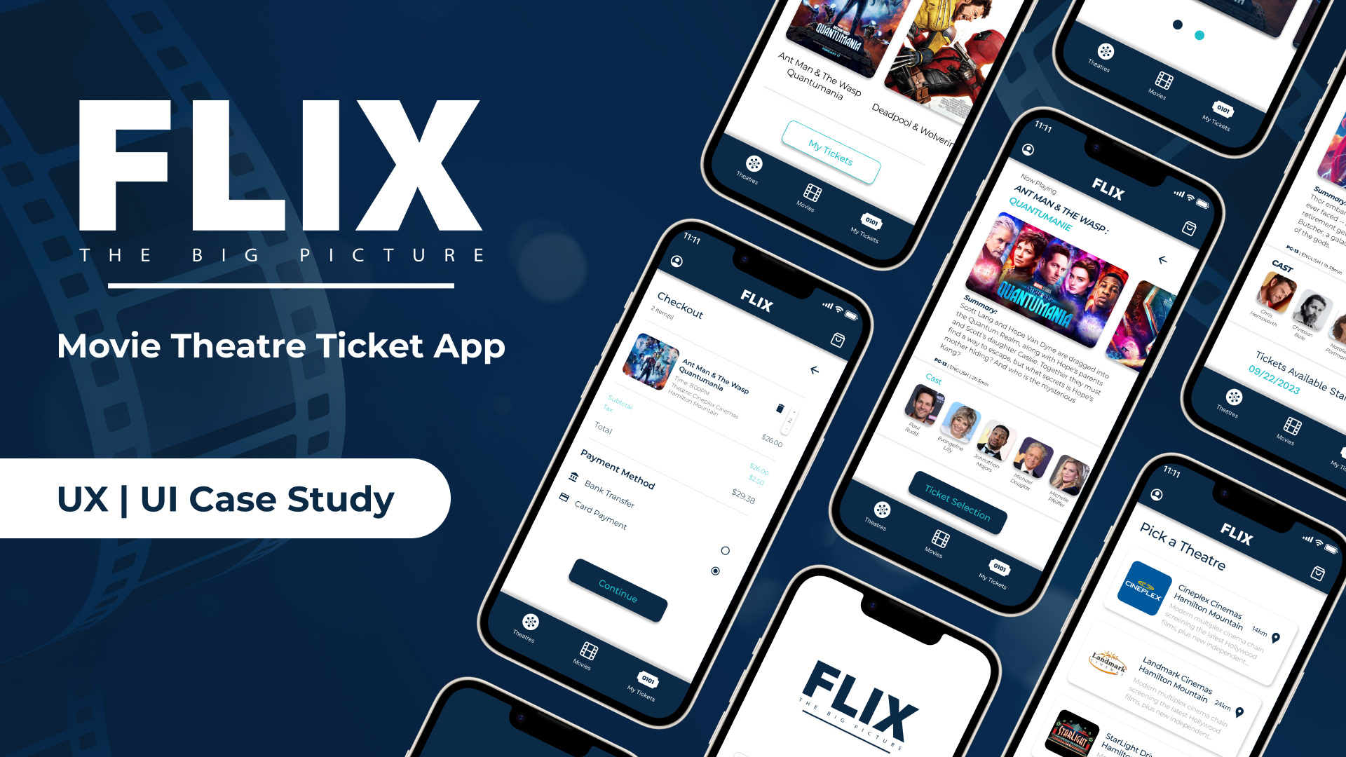 UI / UX Designer : Case study for the complete design process of the FLIX Movie Theatre App.